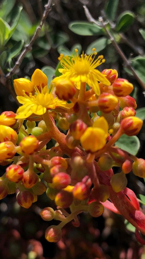 El jardín silvestre que se extiende por las cumbres de La Palma sigue ofreciendo bellas estampas. A este singular parterre situado en la corona de la Isla se está incorporando estos días el resplandor de los retamones (Genista benehoavensis) en flor. El intenso fulgor amarillo de los llamativos pétalos de estos arbustos, endémicos de la Isla, junto a otras plantas del universo vegetal que florece, en esta época, en la cima de la Isla, surgen a borbotones y acentúan la espectacularidad del sobrecogedor paisaje.
