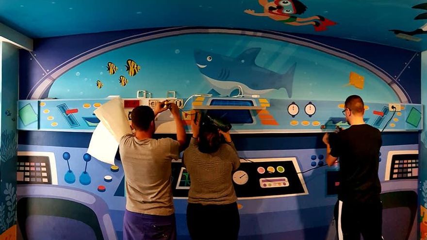 La consulta ha sido transformada en un fantástico mundo submarino en el que los pequeños pueden navegar sin miedo y olvidarse, aunque sea por un rato, de su dolencia.