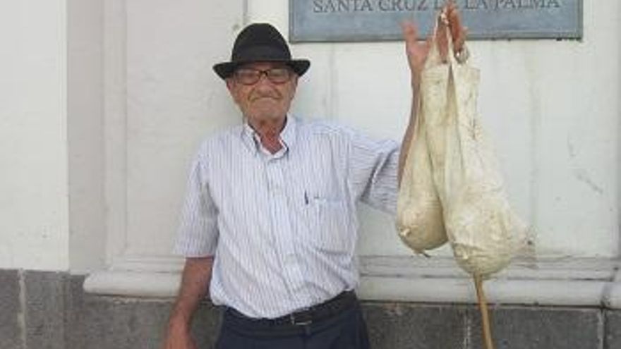Es un oficio que se halla al borde de la desaparición. José Ayut, un hombre de 85 años curtido por la vida y por el sol, es el único artesano de La Palma que elabora y vende zurrones. Su presencia en los mercadillos, en La Recova de Santa Cruz de La Palma, en las ferias o en la puerta del Hospital, no pasa desapercibida. Tocado con un sombrero negro y agarrado a una vara de la que cuelgan un par pieles de cabritos curtidas y listas para amasar gofio, José Ayut ofrece una estampa anacrónica. “Esto se está acabando porque es cosa de viejos y yo no los voy a seguir haciendo 100 años más”, ha asegurado a LA PALMA AHORA con cierto tono de resignación.