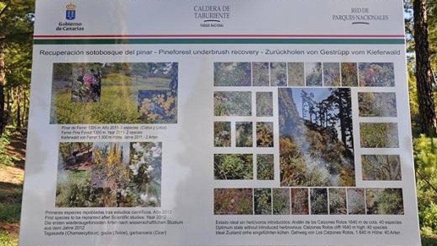 Desde mediados de 2013 “existe un cartel explicativo de las actuaciones junto a la pista de Ferrer en a subida del sendero al pico Bejenado”. Para el curso 2013-2014 “se decidió realizar un programa de educación ambiental, destinado a los escolares de la Isla, mayores de 12 años, (similar al que se lleva con las plantas en peligro de extinción de cumbres desde el curso 1991-1992, donde se hizo una prueba piloto) donde los chicos participen activamente en las labores de repoblación”.