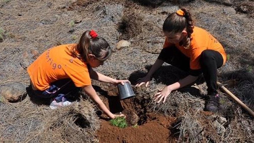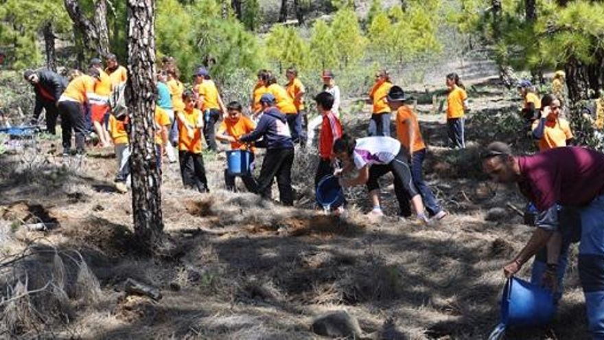 El colegio Mayantigo de Los Llanos de Aridane ha sido el primero en realizar esta actividad, en la cara sur del Bejenado, junto a la pista de Ferrer. Han participado 62 alumnos. Este año se espera que alumnos de dos centros escolares más participen en esta actividad, los días 27 de marzo (Cándido Marante de Los Sauces) y 4 de abril (San Antonio de Breña Baja). En esta zona se está repoblando con 3 especies: gacia, garbancera y tagasaste.