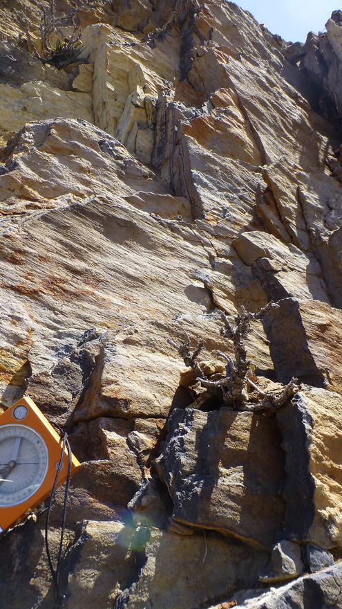 En La Palma se ha medido la orientación de 340 fallas distribuidas en 36 estaciones de medida repartidas por toda la Isla. De este modo, se pueden tener “unas buenas condiciones de contorno para saber cuál es el campo de deformación al que está sometido el Parque Nacional de la Caldera de Taburiente. Se mide la orientación del plano de falla con respecto al Norte, su inclinación o buzamiento y el ángulo que forma la estría de la falla. Las estrías de falla se producen como consecuencia del rozamiento de cada uno de los bloques de roca que separa la falla y nos da idea del movimiento de la misma”, detallan.