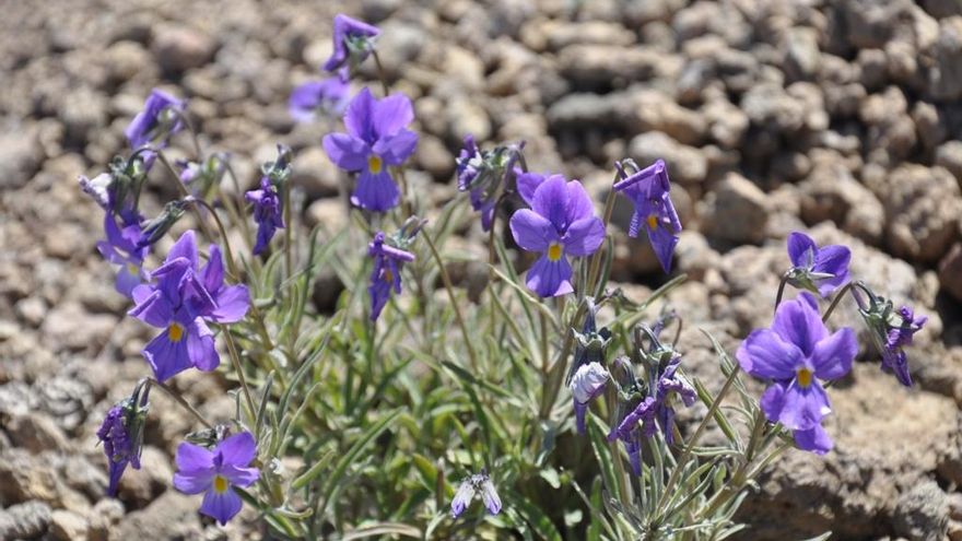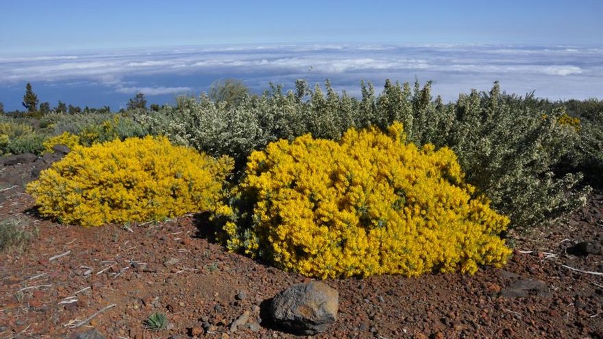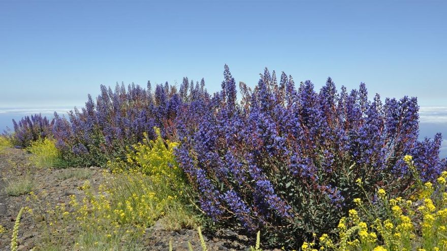 La floración de las plantas de cumbre, como cada año, ha dibujado en distintos puntos de las partes más altas de La Palma una sinfonía de colores y perfumes. Este singular jardín silvestre, a más de 2.000 metros sobre el nivel del mar, esparcido por las cimas de la Isla, está conformado por el añil y rosado de los tajinastes, el amarillo fuerte de las gacias, el claro de la hierba pajonera,  el lila del alhelí y el morado claro  de la violeta.