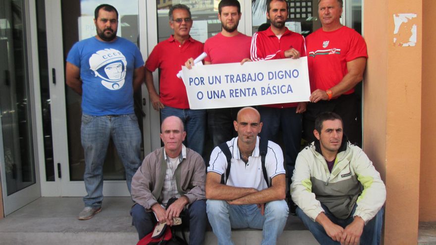 Francisco Javier ha acudido a la concentración simbólica que ha convocado este lunes la Plataforma de Desempleados de La Palma ante las sedes del Servicio Canario de Empleo (SCE) de Santa Cruz de La Palma y Los Llanos de Aridane y en la que algunos de los asistentes han vestido camisetas rojas para denunciar “el drama del desempleo” en una Isla en la que muchos de sus habitantes están viviendo “bajo el umbral de la pobreza” y reclamar “un trabajo digno o una renta básica”.