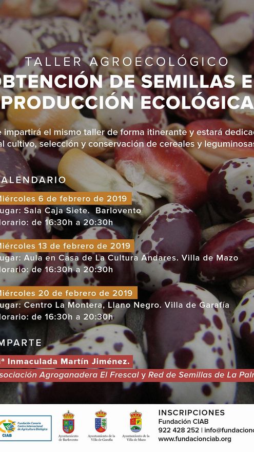 El Cabildo de La Palma, a través de la Consejería de Agricultura, Ganadería y Pesca, y la Fundación Canaria Centro Internacional de Agricultura Biológica (CIAB) organizan un nuevo ciclo de talleres bajo el título Obtención de semillas en producción ecológica, que impartirá la asociación agroganadera El Frescal y que estará dedicado al cultivo, selección y conservación de cereales y legumbres tradicionales, informa en una nota de prensa
