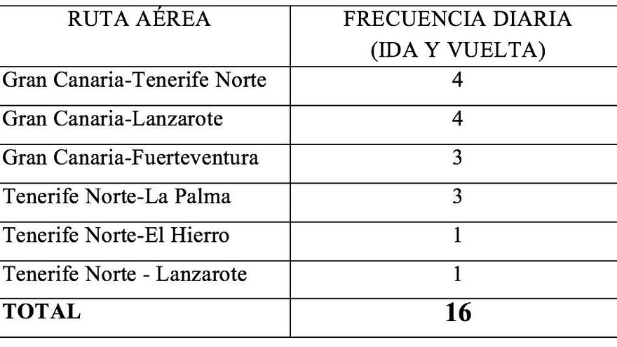 Además, apunta, se incorporan cuatro vuelos de ida y vuelta diarios adicionales en la ruta entre Gran Canaria y Lanzarote y dos en las rutas de Gran Canaria-Fuerteventura, Gran Canaria-Tenerife Norte y Tenerife Norte-La Palma.