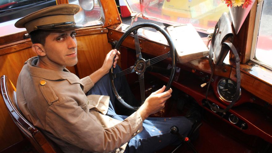 La guagua, en los cortos trayectos que realizará en su nueva vida, llevará al volante un conductor con uniforme de la época, que portará además la tablilla de tickets y la bolsa de cobrar.