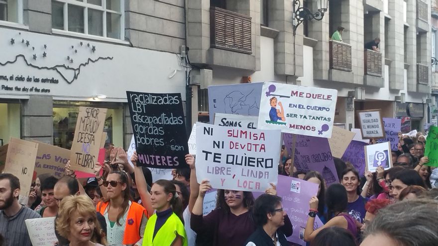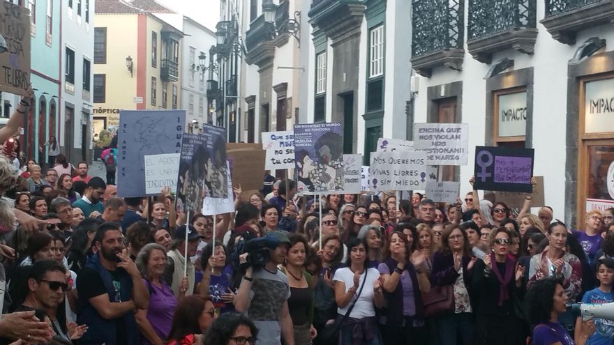 Una multitud femenina ha clamado en la tarde de este jueves por la igualdad entre hombres y mujeres en la Calle Real de Santa Cruz de La Palma en el marco de la huelga feminista convocada a nivel nacional bajo el lema Si nosotros paramos, el mundo se para. La manifestación, muy concurrida, a la que también acudieron algunos hombres, discurrió entre las plazas de La Constitución y España y se lanzaron continuas consignas reivindicativas: “Manolo, hazte la cena solo”, “Ni sumisa ni devota, te quiero libre, linda y loca” o “Cuando se cierran las puertas de la justicia, se abren las de la revolución”.