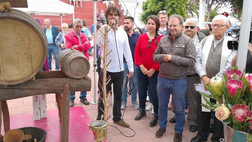La ceremonia que recrea una tradición muy arraigada en las bodegas de La Palma se celebró en la Plaza Francisca de Gazmira y contó con la asistencia de numeroso público.