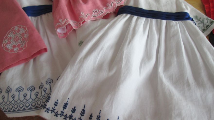 Los vestidos del Obradorio “tienen memoria” porque en ellos está presente “el gran trabajo que han realizado las bordadoras” de La Palma. “Punto de cruz se hace en todo el mundo, pero los dibujos de aquí son exclusivos, porque los artesanos han sido tan celosos, tan celosos, que han guardando el secreto y ahora nosotros nos nutrimos de ellos, los utilizamos para la ropa de niños y niñas”. “Le hemos dado protagonismo al bordado, con más colores, con más pinceladas, para que se admire más ese trabajo que siempre ha estado escondido debajo de la falda de seda”.