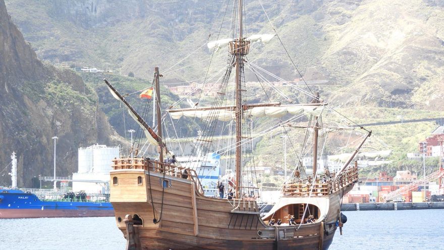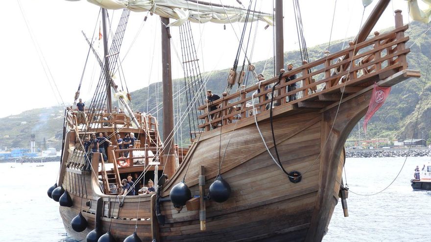 A la entrada de la bahía de Santa Cruz de La Palma, la réplica de la carabela de Colón fue recibida con 21 salvas desde el Castillo de la Virgen en un ambiente marinero festivo. Asimismo, embarcaciones a vela escoltaron a la nao hasta su entrada a puerto.