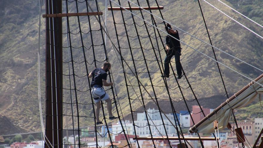 Después de ocho días de navegación, sobre las 15:00 horas de este miércoles ha arribado al Puerto de Santa Cruz de La Palma la nueva nao Santa María con la campana del famoso velero La Verdad a bordo. La embarcación partió de Huelva y su llegada a la Isla estaba prevista para días pasados, pero dos borrascas, con predominio de viento sur, le obligaron a la desviarse a las Azores, lo que prolongó la travesía hasta La Palma.
