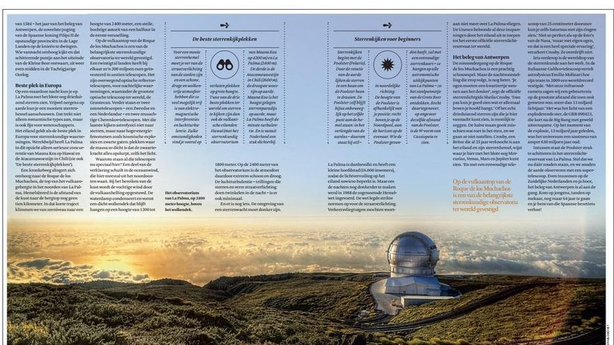La Palma sigue ‘cosechando’ elogiosos reportajes en importantes diarios europeos. En este sentido, corresponsales en España de medios de comunicación de Alemania, Bélgica, Dinamarca, Francia, Italia y Países Bajos, tras un viaje a la Isla realizado el pasado mes de marzo, están publicando extensos artículos donde relatan las excelencias de La Palma, sobre todo, relacionadas con la calidad de su cielo.