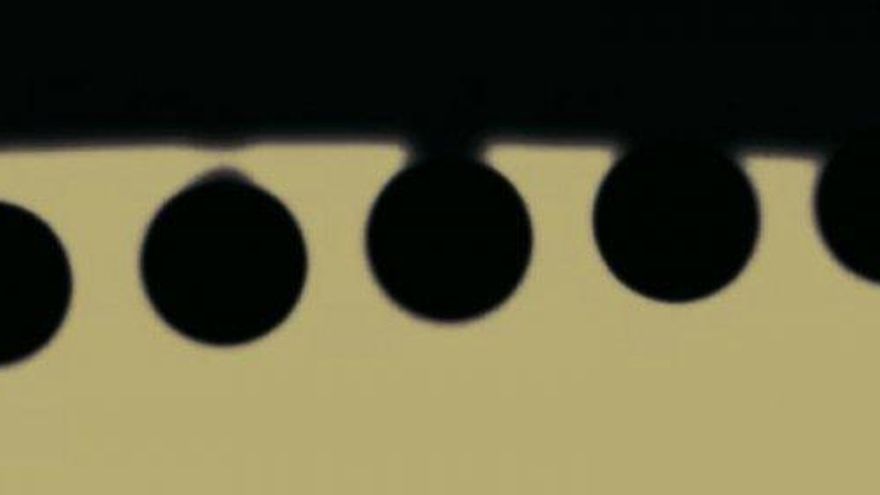 Justo después del contacto “interno entre los discos del Sol y Mercurio la superficie aparente del planeta parece quedarse unida durante algunos segundos al extremo del disco solar, deformándose para adoptar la apariencia de una gota negra”. Este fenómeno “se vuelve a repetir justo antes del último contacto interno. El efecto conocido como gota negra (Black‐Drop en inglés) impide cronometrar con precisión los instantes de contacto entre el disco del planeta y el del Sol, y fue la causa principal por la que las observaciones ‐sobre todo en los tránsitos de Venus‐ que se llevaron a cabo para determinar la distancia entre el Sol y la Tierra presentaran una cierta indeterminación. El fenómeno se debe, principalmente, a efectos de la turbulencia atmosférica de nuestro planeta (lo que en términos astronómicos se conoce como seeing) y la calidad y tamaño del instrumental óptico utilizado”.