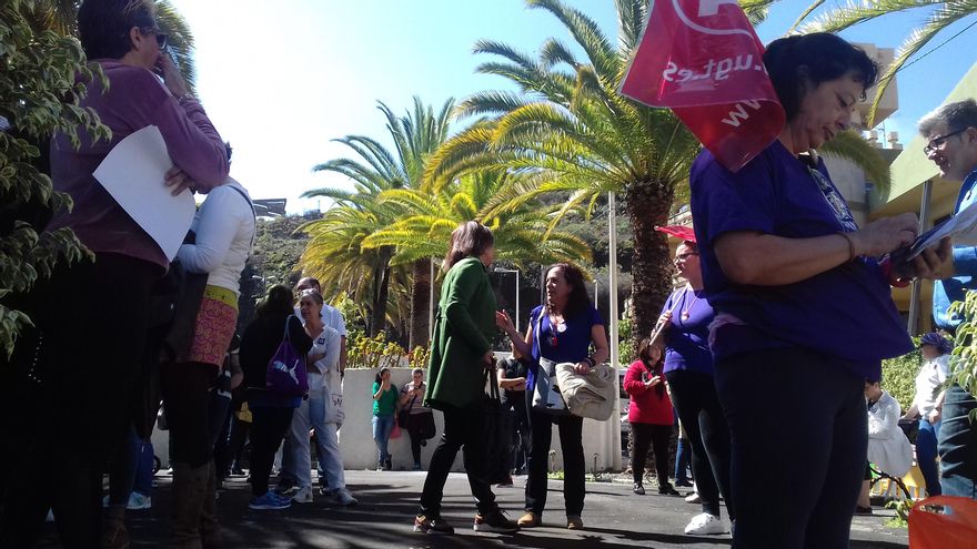 Las trabajadoras del Área de Salud de la Isla se han concentrado ante la entrada principal del Hospital General. Las mujeres suponen el 73,10% de la plantilla del citado Área formada por un total de 976 féminas y 359 hombres.