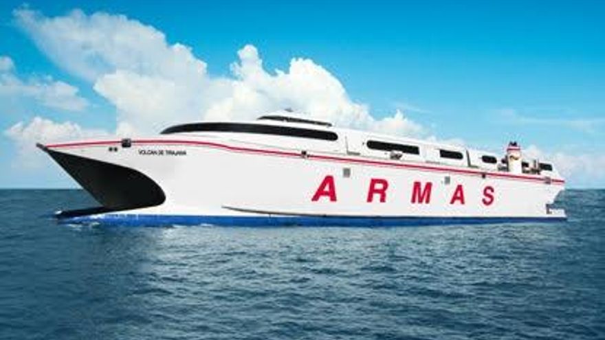 La citada embarcación Armas cubrirá la línea provisionalmente debido a una reorganización de los servicios que presta la naviera en Canarias al estar averiados dos buques de su flota. Como consecuencia de ello, el barco que habitualmente hace la ruta, el Taburiente, ha sido destinado al trayecto marítimo Gran Canaria-Morro Jable (Fuerteventura).
