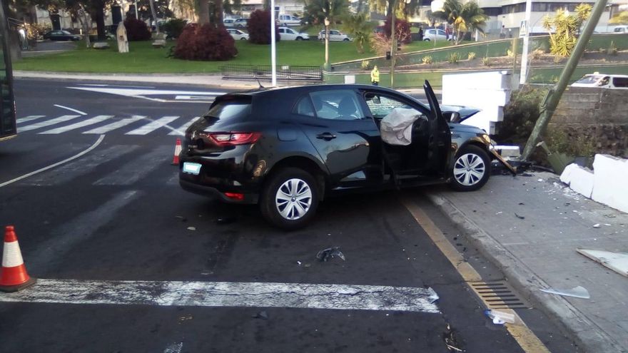 El percance tuvo lugar en torno a las 08.15 horas al impactar un vehículo contra un poste del semáforo de la citada vía situado frente al Mercado Municipal, por debajo de la gasolinera ubicada la zona. El poste ayudó a evitar que el coche afectado cayese a un solar desde una considerable altura, señala la citada fuente. El choque también afectó a la pared de la reseñada parcela.