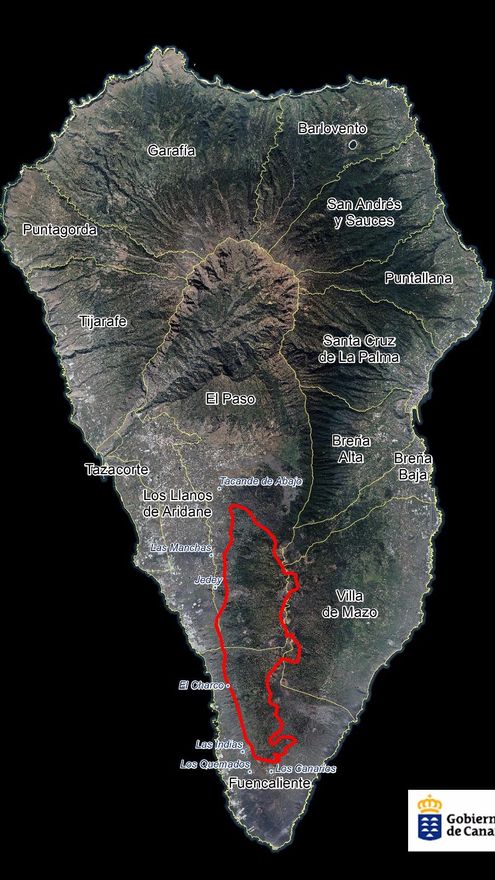 El Gobierno canario hace público, con datos del Grafcan, el perímetro de afección del fuego que consume la isla desde el 3 de agosto