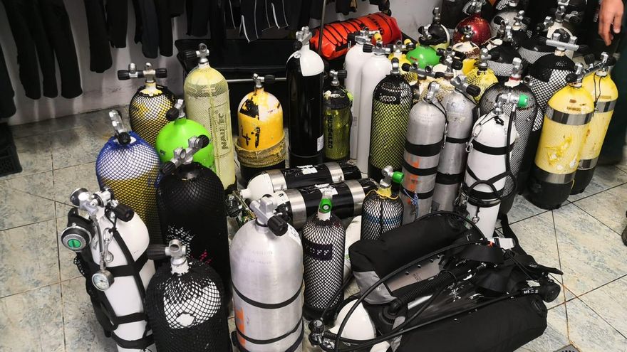 Precintan 60 botellas de aire comprimido de un centro de buceo de La Palma al no ser no aptas para la práctica de la actividad
