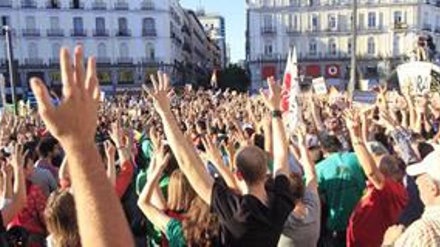 El epicentro de la celebración se ha situado en la madrileña Puerta del Sol, el mismo escenario que hace dos años vio nacer a los “indignados”, donde varios miles de personas han protestado con un “grito mudo”, roto al cabo de unos dos minutos con un clamor: “Sí se puede”. Bajo un fuerte dispositivo policial, los indignados han echado mano de las consignas más habituales de este movimiento, como los clásicos “Lo llaman democracia y no lo es” y “Que no, que no nos representan”, pero también se han escuchado cánticos alusivos a acontecimientos más recientes, sobre todo las preferentes o los desahucios, como “No es un suicidio, es un asesinato”.