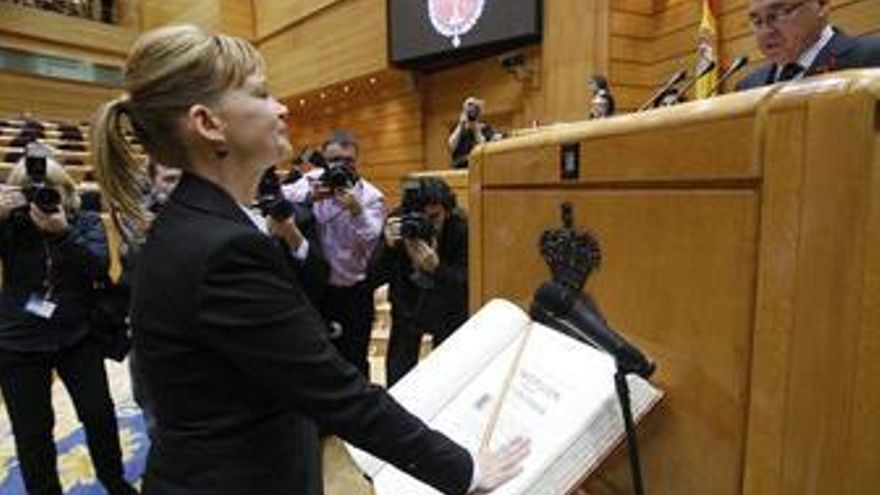 Al inicio del Pleno de la Cámara Alta, el presidente de la misma, Javier Rojo, tomó juramento a la secretaria de Organización, que optó finalmente por la fórmula de prometer su nuevo cargo.