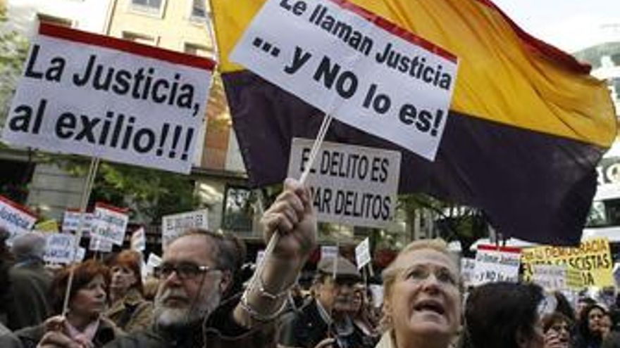 Los manifestantes portaban pancartas con mensajes de apoyo a Baltasar Garzón y contra la justicia española, y también algunas banderas republicanas. La pancarta que encabezaba la concentración rezaba: 'Contra la impunidad. Solidaridad con las víctimas del franquismo'.