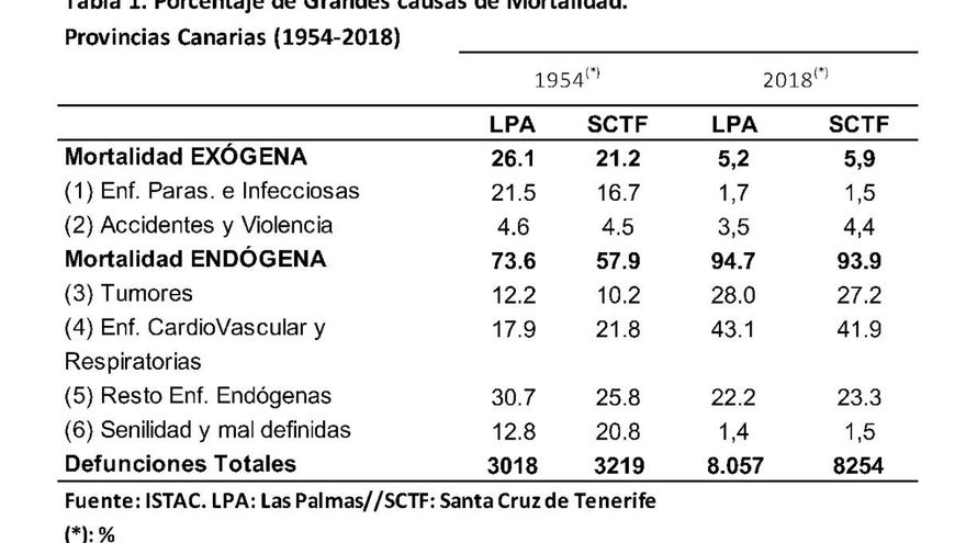 En Canarias desde 1954 la mortalidad por “enfermedades infecciosas o parasitarias” acumulaba en la provincia de Las Palmas el (26.1%) de su mortalidad y en S/C Tenerife (21.2%). La organización de los recursos en esos años se orientó a la denominada “Lucha contra las enfermedades infecciosas”. Se pudo disminuir la mortalidad con cambios progresivos en nuestras condiciones y estilos de vida.
