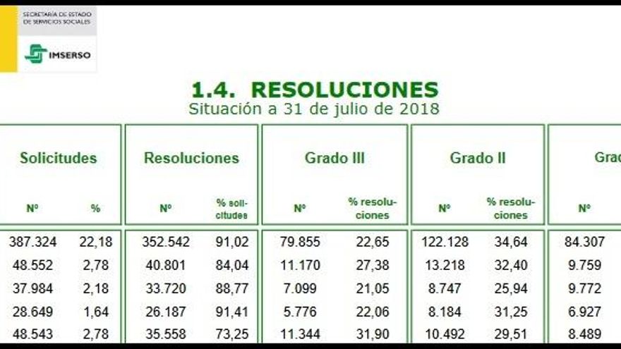 En este sentido, subrayó que no es posible “plantearnos un cambio en dependencia de la noche al día” y que las solicitudes crecen a “muchísima más” velocidad que la resolución de los expedientes. También destacó que el crecimiento se ve lastrado por las personas que han salido del sistema a causa de fallecimientos y que en 2018 se han producido 1.750 bajas.