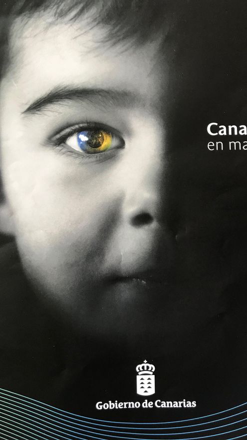Un perro abandona el lateral izquierdo del escudo de la Comunidad Autónoma de Canarias y corre hacia uno nuevo dibujado en la parte derecha de la doble página. Por el camino deja abandonado en el suelo el collar que lucía y se dirige al otro escudo, donde dos perros sostienen el campo de azur, con siete islas de plata bien ordenadas en su interior, ya sin nada al cuello. Es uno de los elementos contenidos dentro de la doble cubierta exterior que envolvía varios periódicos impresos canarios el pasado fin de semana coincidiendo con la aprobación en el Senado del Estatuto de Autonomía de Canarias. La inversión publicitaria era del Gobierno de Canarias, que empleó para tal fin dos eslóganes, uno en la portada, Canarias en marcha, y el otro, en la contraportada: Primero Canarias.