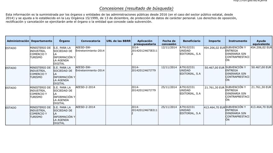 Para la operación le vuelve a apoyar el periódico El Mundo, el único de circulación nacional que se está haciendo eco de la crisis del PP canario. En los chats de los populares circula desde hace días un ilustrativo pantallazo sobre las subvenciones a fondo perdido que en el año 2014 concedió el Ministerio de Industria a Unidad Editorial, empresa editora de ese diario, para su transformación digital: un millón de euros.