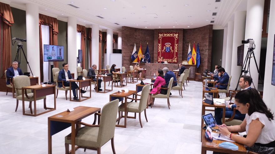 El Parlamento de Canarias ha celebrado su primer pleno con las presencia de todos los diputados y diputadas, algo que no sucedía desde que se decretase el estado de alarma por la pandemia de COVID-19.