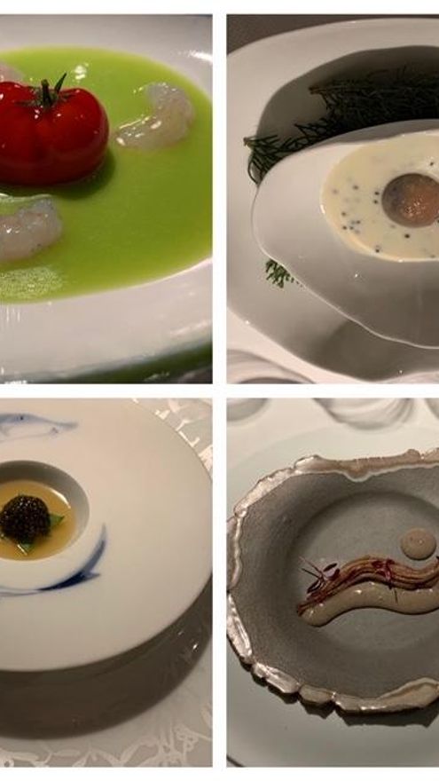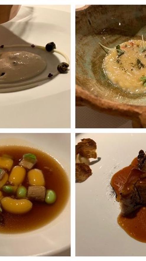 El segundo de los bloques tiene por nombre “Flora & Fauna”, en la que encontramos el falso Tomate Nitro con Gazpacho Verde y Quisquillas (2008). Cuántas aberraciones he encontrado con este plato por distintas casas que quieren y no pueden, pero qué bueno es cuando tiene la ejecución perfecta, como ha sido aquí. El Ajoblanco Malagueño con Huevas de Arenque y Gambas (1998), poco que añadir a una elaboración (ajoblanco) ya ligada inequívocamente al chef. Caviar/Puchero/Lengua (2018), una secuencia donde me quedo con esa gelatina y su intenso sabor a puchero de casa, que como se suele decir, “asentaba las madres”, sublime. Terminamos la secuencia con un mar y montaña partiendo de las excelencias de dos productos inconmensurables, Anchoa con Trufa (2016).