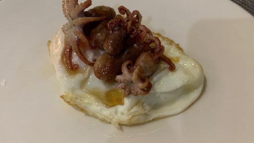 Almejas con Alcachofas que están cocinadas con el agua que soltaron las primeras que dan lugar a un auténtico plato de mar y montaña en cada bocado sin trampa ni cartón. Atención al huevo frito campero con pulpito, donde el huevito, cobarde y con colores es realzado en sabores con el toque marino que le da ese pulpito, que a su vez se enriquece del toque lácteo de la yema, nos encontramos ante un plato tan atrevido como exitoso, que podría ser Infierno o Gloria, quedándose sin duda en el equipo de este último adjetivo.