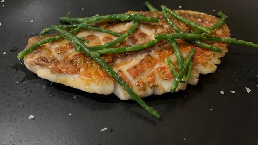 La traca final la pone un puré de apionabo con trufa rayada, y punto. El mar en forma de un lomo de salmonete de roca, como me explicó Juanjo, su potente color rojo procede de su dieta, exclusivamente de mariscos y moluscos de las profundidades, de ahí que la mejor forma de atacarlo sea con pocos adornos y así poder degustar los oceánicos sabores que su salvaje alimentación le otorga a este pez.