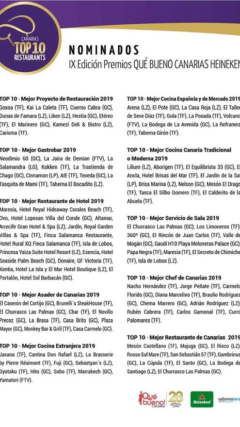 A siete días de la celebración de los IX Premios Qué Bueno Canarias Heineken, la rumorología y las ganas por conocer el palmarés se siente en todas y cada una de las conversaciones que uno mantenga con profesionales del sector. Es público el listado de los miembros del jurado de dichos premios, por lo que de nada serviría ocultar que quien les escribe forma parte del mismo, y lo máximo que voy a decir es que mis votaciones ya están más que enviadas en tiempo y forma, como no podría ser de otra manera. A partir de ahí, juego con las mismas cartas que el resto de los invitados a la gala, incertidumbre hasta los momentos en que los distintos sobres vayan viendo la luz.