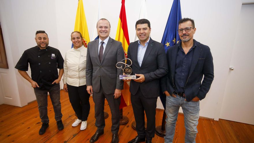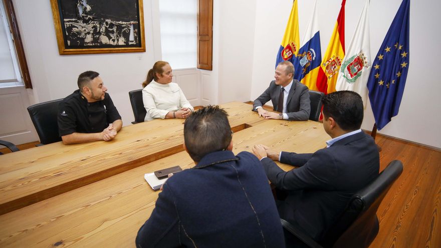 En la mañana del martes 18 de febrero, el Alcalde de la capital grancanaria, Augusto Hidalgo, recibió a los 4 restaurantes que salieron galardonados durante la gala de los IX Premios Qué Bueno Canarias Heineken 2020. A la cita acudieron los chefs Idaira Santana (El Pote, Mejor Cocina Española), Carmelo Florido (El Equilibrista33, Mejor Cocina Canaria), Braulio Rodríguez (Majuga, Mejor Chef de Canarias) y en lugar de Luis Ramos, jefe de sala de El Churrasco, ausente por viaje, acudió el propietario del Grupo M&M, Mario Gil (El Churrasco, Mejor Sala).