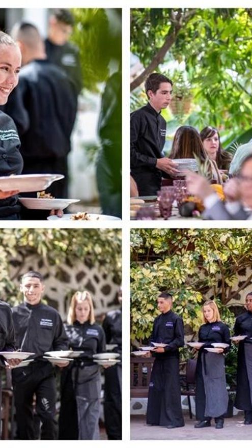 Algo de lo que pocos hablamos y que casi no se pone en valor es el servicio en sala, y aquí tuvo que hacerse para 60 comensales, con cámaras de televisión y lo que ello conlleva. Por eso es de agradecer y felicitar que se contara con el IES Bañaderos. En contacto con Tanausú Motas, su jefe de departamento de Hostelería y Turismo, nos contó que “teníamos que mandar a los chicos y guardar este secreto hasta el día que llegaron al rodaje; ellos desconocían dónde iban a ir y lo que tenían que hacer, y eso fue muy complicado de gestionar, la verdad. Cuando llegó el momento de decirles todo su reacción fue de alegría y emoción incontenida, el poder estar al servicio de esos chefs y con todo lo que ello conlleva les hizo trabajar duramente para realizar su servicio a la altura y doy fe que lo consiguieron. Disfrutaron de la experiencia en cada momento y las sensaciones como profesor que me deja el tiempo es que además fue tremendamente útil para ellos por ver el esfuerzo que requiere el trabajo en eventos y actividades como estas. Desde el IES Bañaderos siempre estamos dispuestos a apuntarnos donde nos llamen para ocasiones como estas, como también hemos demostrado en las distintas ferias como Gran Canaria Me Gusta y otras, que hemos acudido con ganas de dar lo mejor de nosotros mismos. Muy agradecidos a Gastronomic Projects y el Cabildo de Gran Canaria por contar con nosotros.