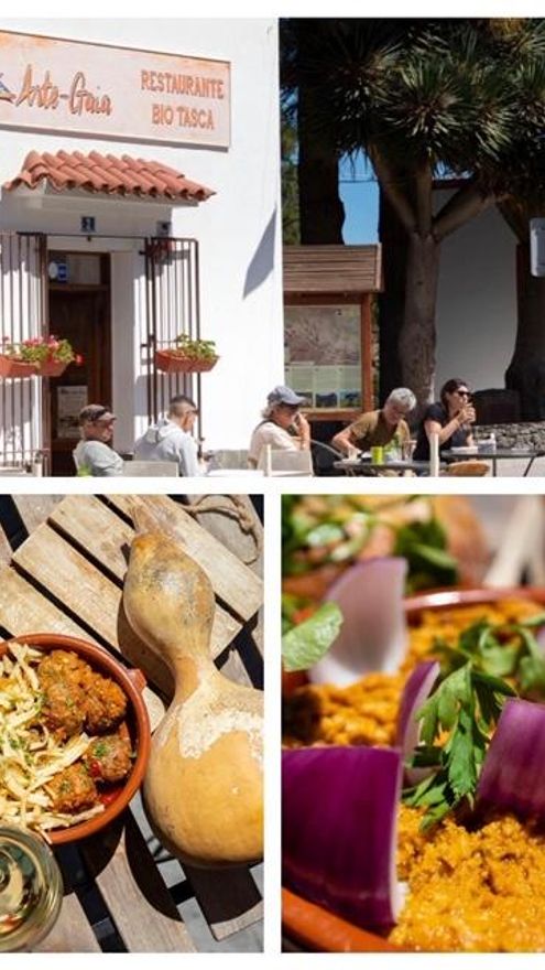 Arte Gaia Restaurante: En las cumbres grancanarias de Artenara nos enamoramos de este mix de restaurante, biotasca, gastrocueva y tienda, todo a la vez. En el mismo, Juanate Falcon y su equipo se vuelcan en transformar en sus fogones ese producto de proximidad con la responsabilidad que ejerce el defender su territorio. Pero si después de comer te has quedado con ganas de más, puedes llevarte a tu casa algunas de las decenas de productos que en forma de vinos de Artenara, panes de la zona, mieles y un largo etcétera, te están esperando.