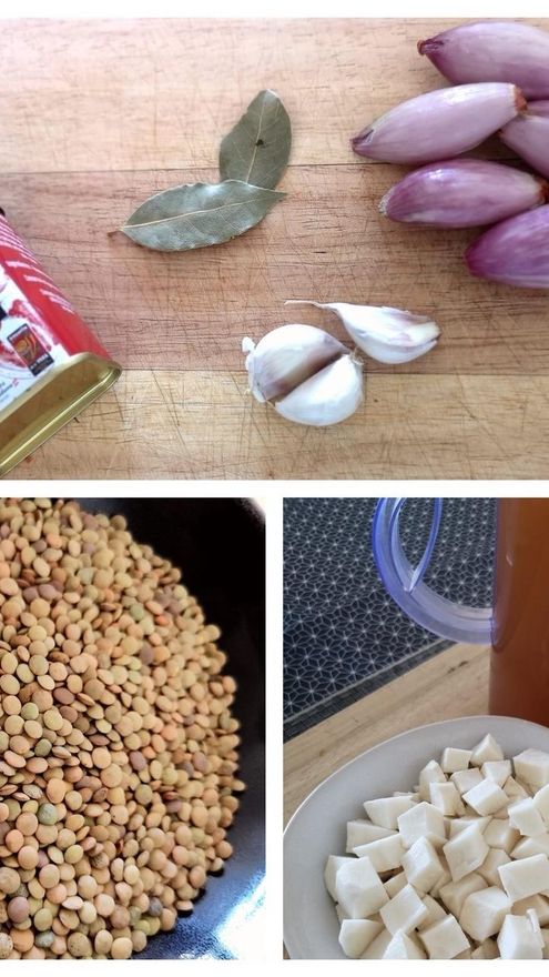 Elaboramos un sofrito con el aceite, el ajo, la chalota picada y el laurel. Lo ponemos a fuego medio hasta ablandar las chalotas, o en su defecto, la cebolla. Añadimos el pimentón, removemos y mojamos con un chorrito del caldo elegido. A continuación incorporamos las lentejas, la batata troceada, la sal y el caldo. Llevamos a ebullición y bajamos el fuego al mínimo, cocinando con un suafe chuf-chuf hasta que las lentejas estén listas. En olla express serían unos 20 minutos, en un caldero normal quizás el tiempo aumente hasta los 35 aproximadamente por lo que aconsejo ir probándolas.