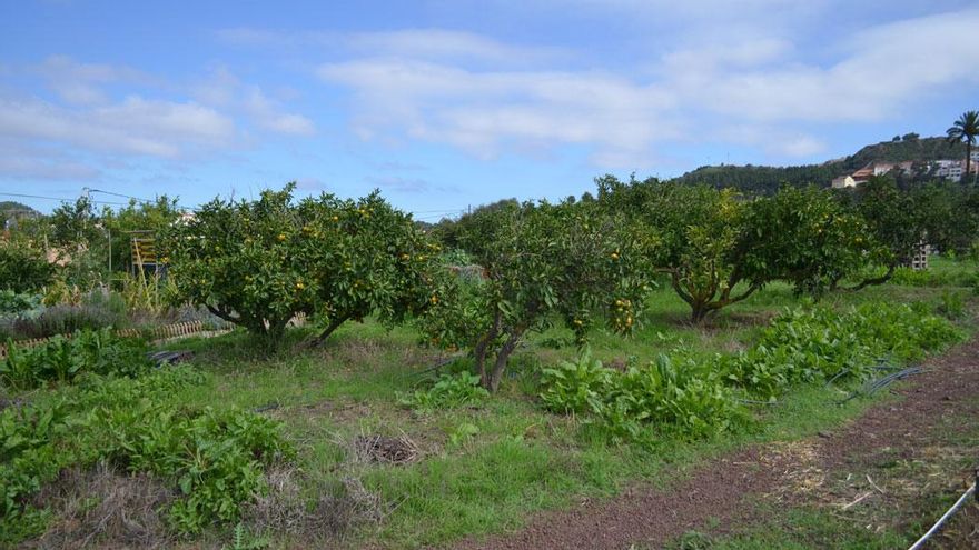 Pasamos por una zona de flora canaria endémica donde prevalece la laurisilva, “la idea es que la gente las conozca y se familiarice con las plantas de la tierra”, comenta Juan Luis. Dejamos atrás los tiles, laureles y un fresno venezolano, -“este lo trajo mi tío de allá”, explica Juan Luis. En el camino nos topamos con una señora, acompañada de su hija, ambas echan un vistazo y arreglan y sus bancales. Le preguntamos a la señora sobre la experiencia y para contestar, suelta los utensilios agrícolas y se dirige a nosotros. “En camino vienen coles de Bruselas, lechugas, puerros, brécol y tomates. Tú eliges lo que plantas y lo cosechas sin químicos ni transgénicos. Es un placer llevar a casa y cocinar estos productos. Otra cosa buena que tiene este lugar es que no estás sola, tenemos la posibilidad de intercambiar conocimientos y experiencias con los demás usuarios”. Asegura que lleva menos de dos meses alquilando su parcela en Huertos El Farmero, pero sabe que va para largo.