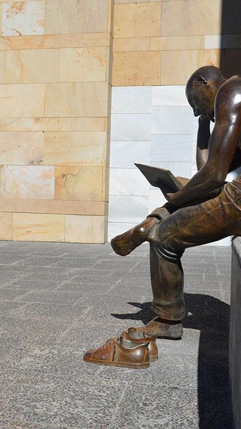 Escultor grancanario, artífice de su vida y de su obra, actualmente estudia Filosofía en la UNED. Manolo González se reconoce atraído e influido por lo clásico, y su obra camina en dos vertientes que se cruzan, la obra pública y la obra privada. Amante del pensamiento y la reflexión, nos muestra parte del discurso que empuja, eleva y da sentido a toda obra de arte. A la vista de todos los ciudadanos se muestran sus esculturas como el Tritón en la playa de la Laja, a la entrada de la ciudad de Las Palmas de Gran Canaria, el monumento a Unamuno en homenaje al escritor por su paso por las tierras de Artenara o los Muchachos I y II en la Biblioteca General de la Universidad de Las Palmas de Gran Canaria. Hay más esculturas suyas en la isla, que quizás, conociendo un poco a su autor te animes a descubrir. Eso queda a tu elección, como a él mismo le gustaría y apoyándome en sus propias palabras, “si no formas individuos capaces de construirse a sí mismos, tienes lo que vemos en la sociedad”.