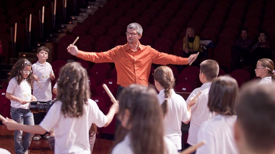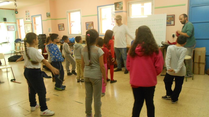 Comienza la clase en el colegio José Tejera Santana de Jinámar. Los 14 niños encabezados por el profesor Davide Payser empiezan golpeando sus menudas piernas contra el suelo, casi como si de una marcha militar se tratara. Todos en orden, con disciplina y concentración. Aunque a más de uno se le desliza una sonrisa traviesa y silenciosa para el compañero de al lado. Está feliz del reencuentro, hoy es el primer día después del parón navideño.