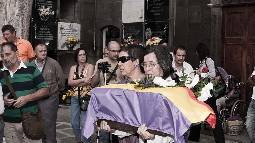 No lo creo, pero nosotros seguiremos batallando con el Cabildo y el Gobierno de Canarias. Ya se lo dijimos a Bravo de Laguna y también a Paulino. Nosotros confiamos en que algún día saquen una legislación porque esto no puede dejarse a medias, desde que empiecen a aparecer más cuerpos no podrán pararlo. Al principio había algo de miedo por si no aparecía ningún cuerpo pero desde que se encontraron los primeros esto cambió. Estamos hablando de fosas repartidas por todo el archipiélago, no sólo en Gran Canaria. En Tenerife hay también muchas fosas pero la clase política se muestra un poco más reacia. Allí se sabe que se tiraron algunos cuerpos de fusilados en unas cuevas de las Cañadas del Teide y también utilizaban mucho la práctica de tirarlos al mar, cosa que complica mucho más la búsqueda. También en Gran Canaria sabemos que se tiraron cuerpos al mar a la altura de Marfea. Por todo esto creemos que ni Gobierno ni Cabildo pueden hacer como que esto no existe. Las Asociaciones no buscamos dinero, queremos que se hagan los trabajos y para eso el Cabildo dispone de mucho personal y material, tienen algo de maquinaria y también tiene arqueólogos muy bien preparados. Algunos antropólogos de la Universidad también se han prestado a colaborar con nosotros de forma altruista y buzos del cuerpo de bomberos han mostrado interés en la recuperación de restos bajo el mar. Así poco a poco vamos consiguiendo cosas. Adán Martín se comprometió mucho con la causa en su momento y puso una importante financiación sobre la mesa para poder empezar los trabajos de excavación. Con el gobierno de Paulino Rivero se ha aprobado la declaración de Bien de Interés Cultural como sitio histórico, los pozos del Puente, la Vuelta del Francés, el Llano de las Brujas y el de Tenoya, todos en Arucas.
