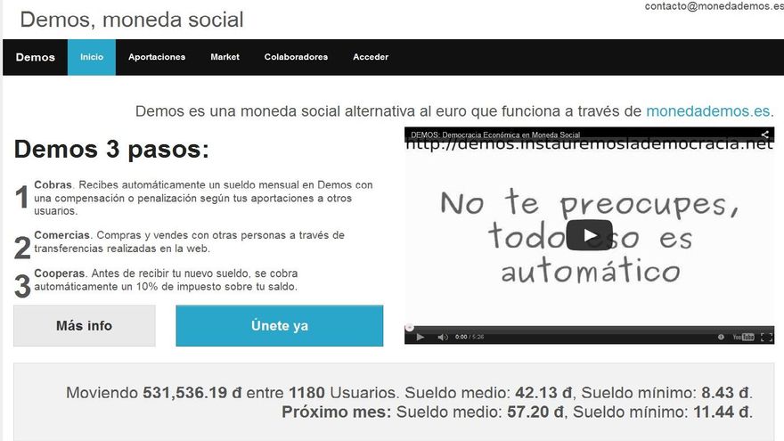 Demos es el acrónimo de Democracia Económica en Moneda Social. Todas las personas que se registren en la web pueden empezar a utilizarla y obtener una renta básica, que se calcula según el número de usuarios, y mediante la cual pueden realizar la compra de bienes y productos. De hecho Miguel Ángel Figueroa destaca que la idea de renta básica “sí que es posible”, pues ellos mismos lo han probado con este sistema. Al comienzo de cada mes, cada persona recibe un sueldo.