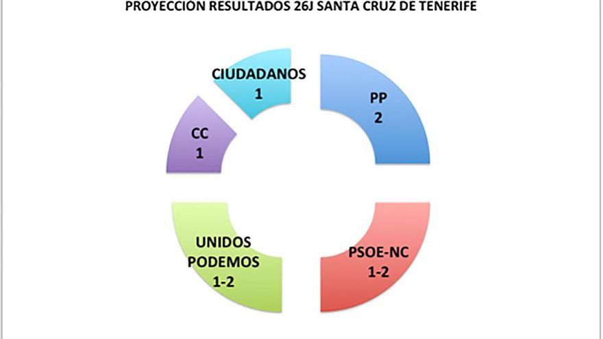 El resultado podría pasar del que se produjo el 20D -PP (6), Podemos (2), PSOE (1), AHI (1) y ASG (1)- al siguiente: PP (3), Alianza Progresista (6), AHI (1) y ASG (1)-, muy diferente como pueden observar.