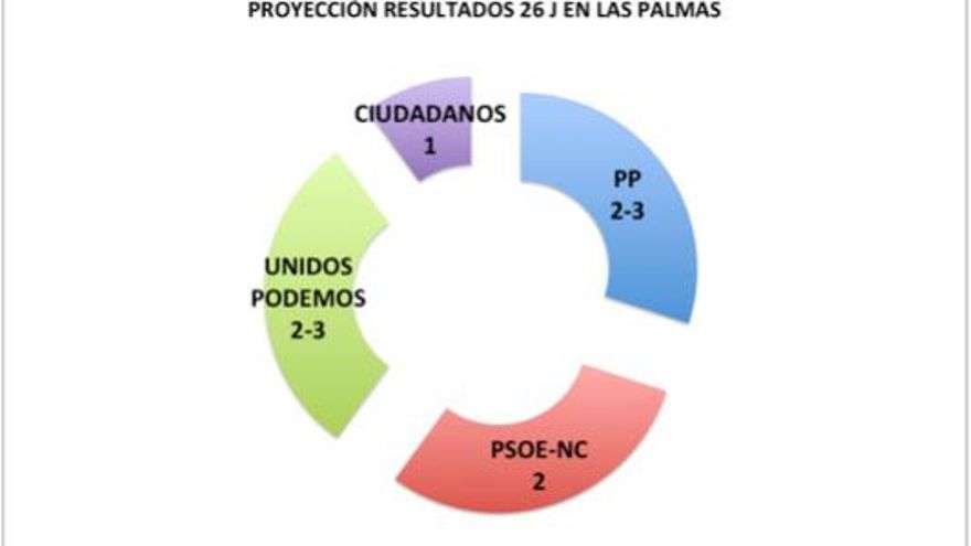 Parece difícil que se muevan muchos escaños con relación al reparto que se produjo el 20D. Aunque si la alianza Podemos e IU-UP no perdiera ningún apoyo se iría en torno a los 150.000 votos que sí le posibilitarían pelear con el PP por el octavo escaño por Las Palmas.