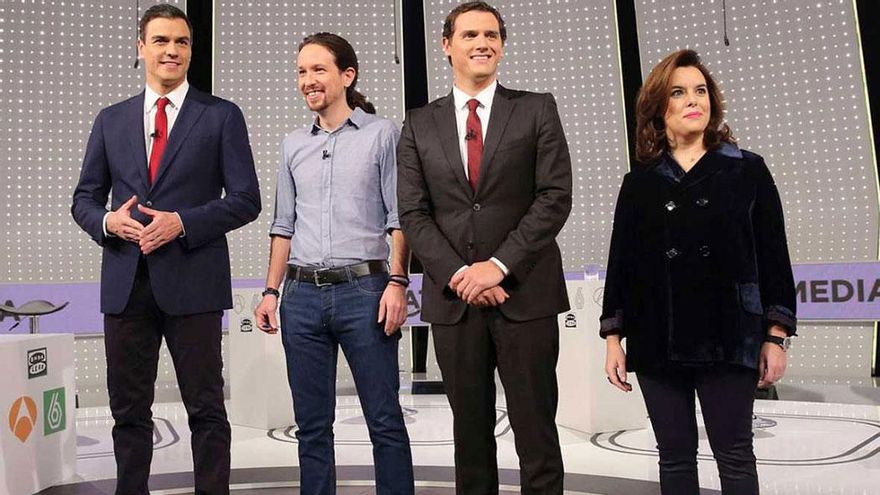 En las generales, pese al frustrado debate a cuatro (en el único que se llevó a cabo Rajoy se ausentó y fue sustituido por Soraya Sáenz de Santamaría), mantuvieron buenos niveles de audiencia y casi la mitad de los electores vio el tenso encuentro entre Rajoy y Sánchez.