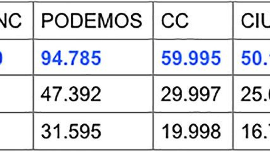 El séptimo y último escaño en el 20D lo logró C’s con poco más de 50.000 papeletas. Y el sexto el PSOE-NC con 51.405. De producirse escasas variaciones son los que podrían cambiar de dueño.