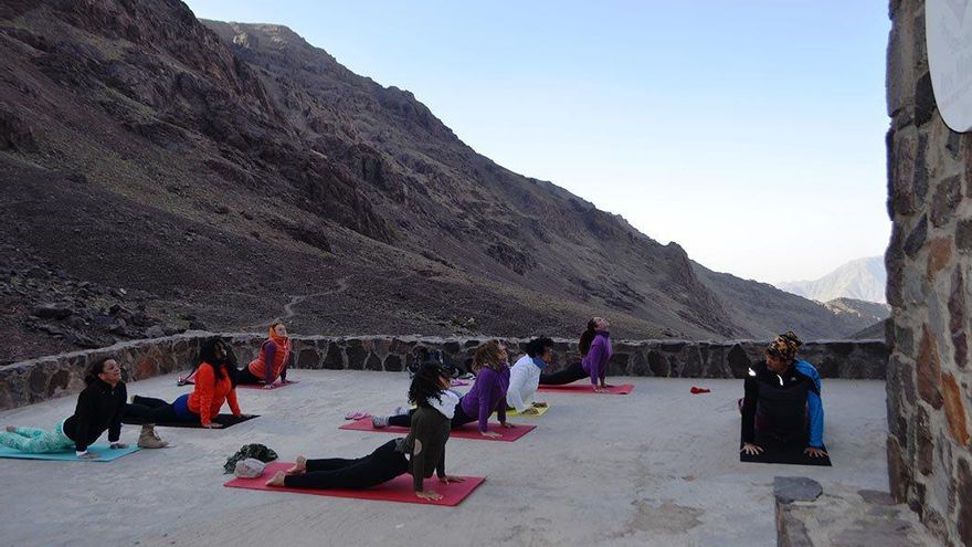 Hoy caminamos desde el Valle de Imlil en dirección al pico Toubkal hasta el refugio, a donde esperamos llegar y pasar noche, para por la mañana hacer cumbre. ¿Surgirán problemas con la práctica del yoga?, ¿disfrutaremos del trayecto sin problema?, ¿Será que todos llegaremos y no sufriremos mal de altura? Vamos y veamos. Vamos como somos, con lo que hacemos, con nuestro yoga, con nuestro puzle a medias, con mil piezas desordenadas pero dispuestas para construir una realidad más amable. Con el equipaje que tenemos a cuestas comenzamos el camino queriendo alcanzar la cima del Toubkal, luego veremos cómo bajamos. Que aún nos queda visitar Esaouira y Marrakech.
