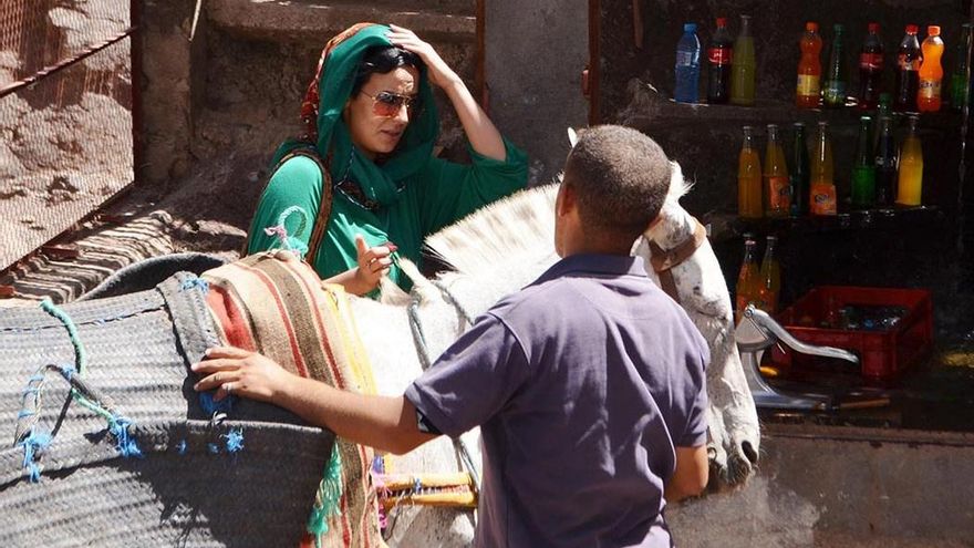 Nos enfrentamos hoy a lo que en un principio era el objetivo principal del viaje, subir un cuatromil. Recogemos el equipaje, cargamos las mulas que nos acompañarán hasta el refugio, desayunamos siguiendo los consejos de José Santiago, coordinador de In&Out YogaHolidays, frutos secos, fruta fresca, líquido… “Algo de azúcar tampoco va a sobrar hoy, aprovechen y coman Nutella y pan”, nos dice. Según vamos terminando de desayunar y coger las mochilas esperamos en la puerta de la casa de Omar, donde nos hospedamos hasta hoy en Valle de Imlil, a los últimos rezagados y, finalmente partimos. En cada una de las mochilas el menor peso posible pero, por supuesto, un litro de agua fijo, como mínimo, y abrigo. Se hace raro con los treinta y largos grados que respiramos ahora coger abrigo, pero la temperatura a partir de los tres mil metros desciende, pudiendo bajar en la cumbre por debajo de los doce grados ahora en verano.
